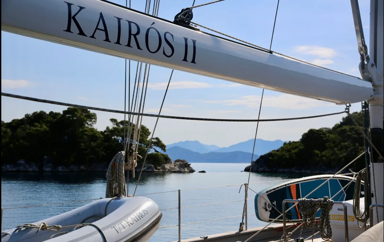 KAIRÓS has a sail area of 600 m2 and is 38 m long. The name "KAIRÓS" comes from ancient Greek and means to seize the "right moment" at the right time. With capacity for up to 16 guests, KAIRÓS is perfect for chartering the whole boat, for large families, groups of friends or for business events. If you are interested in some technical data, this boat is a 38 m long Stay Gulet (Bermuda gulet), designed by Klaus Röder from Tutzing, Germany in 2017, and built in steel in the style of a classic yacht in Bodrum/Turkey. Finished in teak and mahogany, large open deck area, approx. 600 sm of sail area, and has 8 double cabins in two categories.