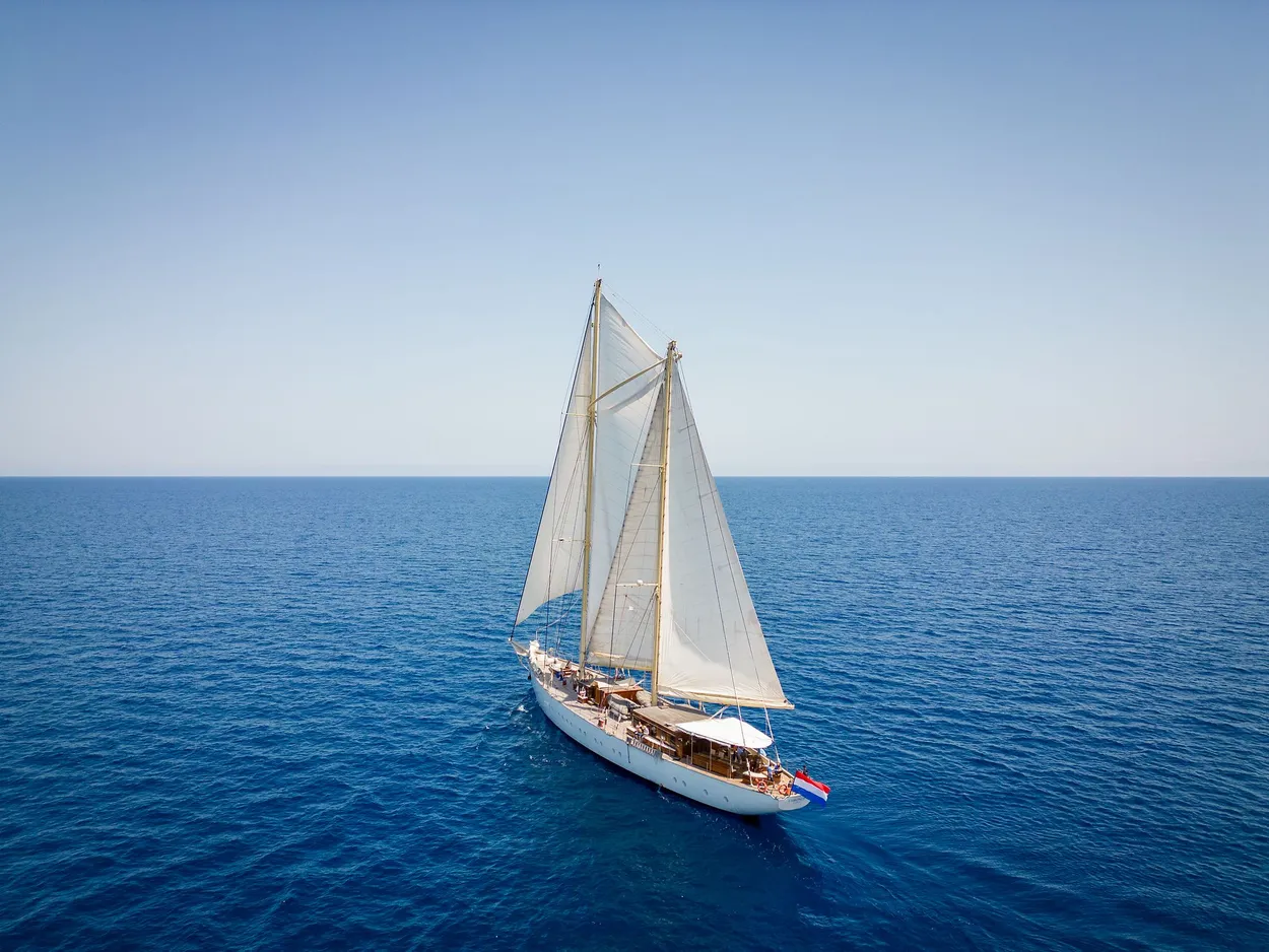 Kairós: Velero clásico de madera, de 38m de eslora (16 personas + tripulación)