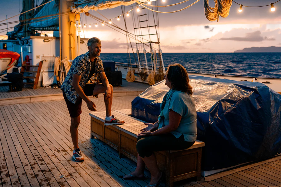 A bordo del Santa Maria Manuela disfrutarás de pensión completa con tres comidas diarias, además de café, té, agua, zumos, fruta y snacks disponibles durante todo el día. Podrás participar activamente en las maniobras de vela bajo la instrucción de una tripulación cualificada y experimentada, viviendo la magia de izar las velas en un barco con historia. El ambiente a bordo es de camaradería, aprendizaje y conexión profunda con el océano. Esta experiencia es ideal para amantes de la naturaleza, la navegación tradicional, la vida marina y para quienes buscan desconectar del ritmo cotidiano sumergiéndose en la autenticidad del Atlántico.