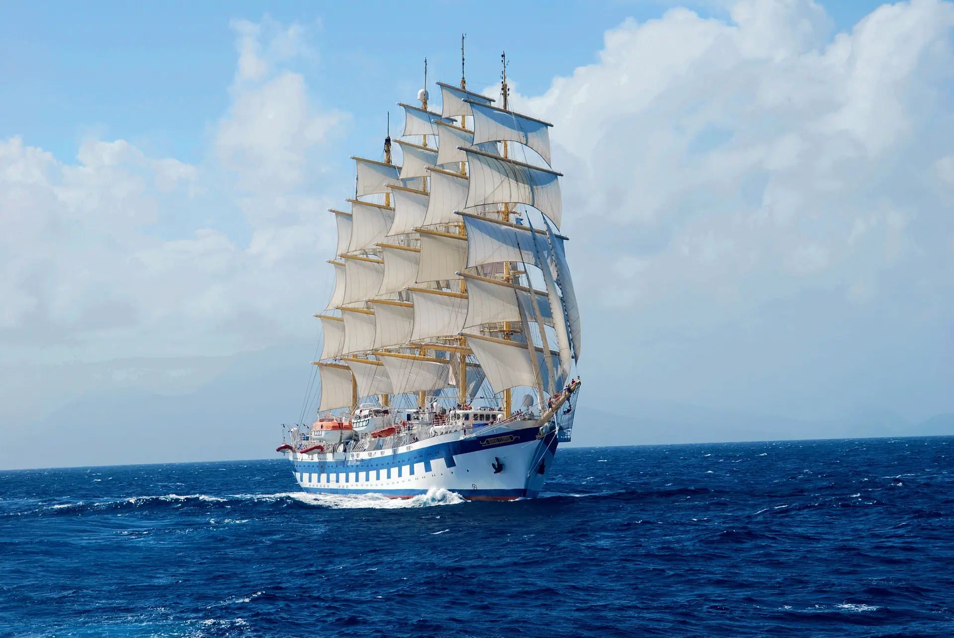 El Royal Clipper es, desde el año 2001, el velero más grande del mundo oficialmente registrado en el Libro Guinness de los Récords, una distinción que lo convierte en una leyenda viva de la navegación a vela. Construido en el año 2000, este majestuoso buque de cinco mástiles es un homenaje directo a su ilustre predecesora, la Preußen, el legendario velero alemán de principios del siglo XX. Con sus 134 metros de eslora, 16 metros de manga y un calado de 5,98 metros, el Royal Clipper ofrece unas propiedades de navegación óptimas que combinan la emoción del viaje a vela auténtico con el confort y las comodidades de un yate moderno de lujo. Sus cinco mástiles alcanzan los 54 metros de altura y sostienen un impresionante velamen de 5.000 metros cuadrados distribuidos en 42 velas, capaces de impulsar esta magnífica embarcación a velocidades de entre 7 y 18 nudos.